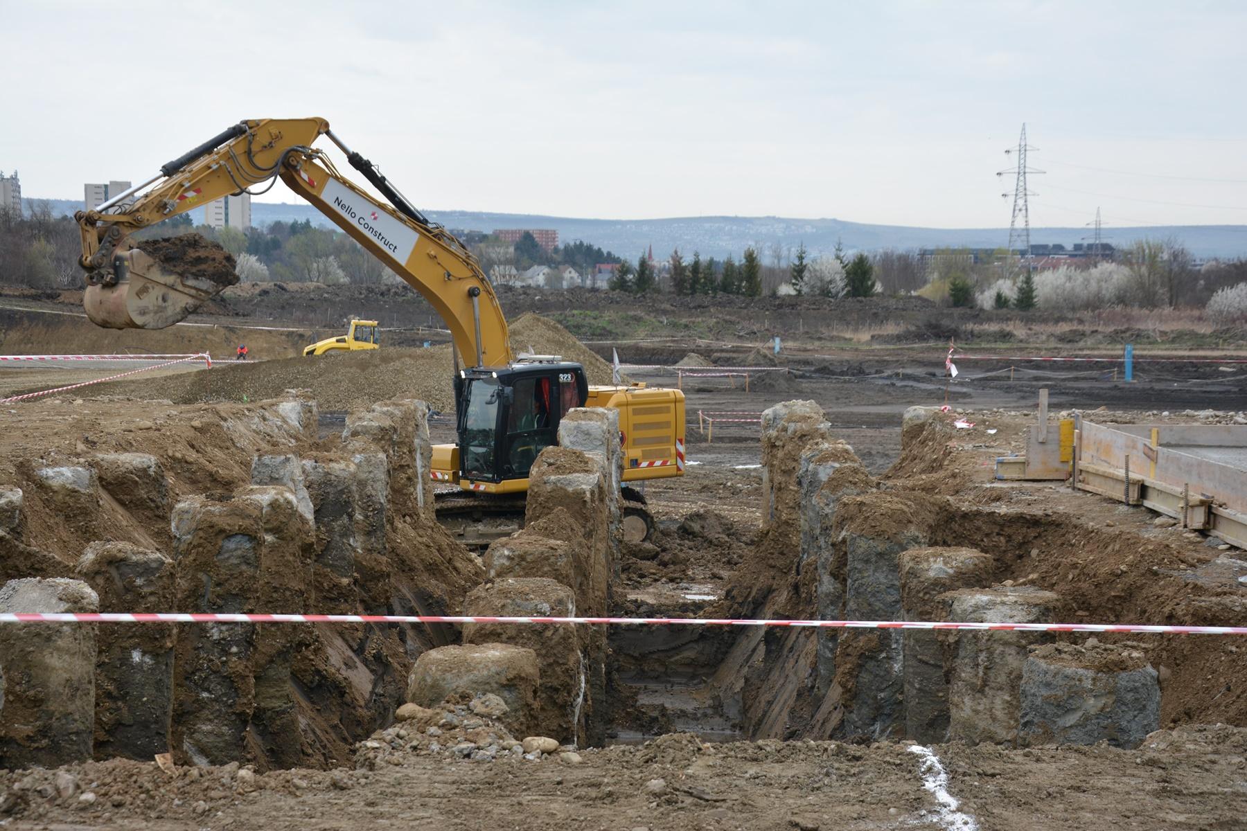În acest moment, principalele operațiuni desfășurate vizează turnarea piloților, până în prezent fiind amplasate deja 2.233 de bucăți, precum și realizarea pernei de transfer din beton. De asemenea, în perioada următoare vor continua acțiunile de realizare a incluziunilor rigide, urmând a fi efectuate și hidroizolații sub radierul general în zona fără subsol, precum și cofrare, armare și betonare a radierului general.