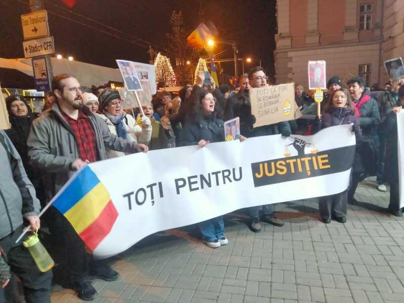 Peste o mie de persoane au protestat, duminică seară, în faţa Palatului de Justiţie din Cluj-Napoca şi apoi au pornit într-un marş pe mai multe străzi din municipiu.