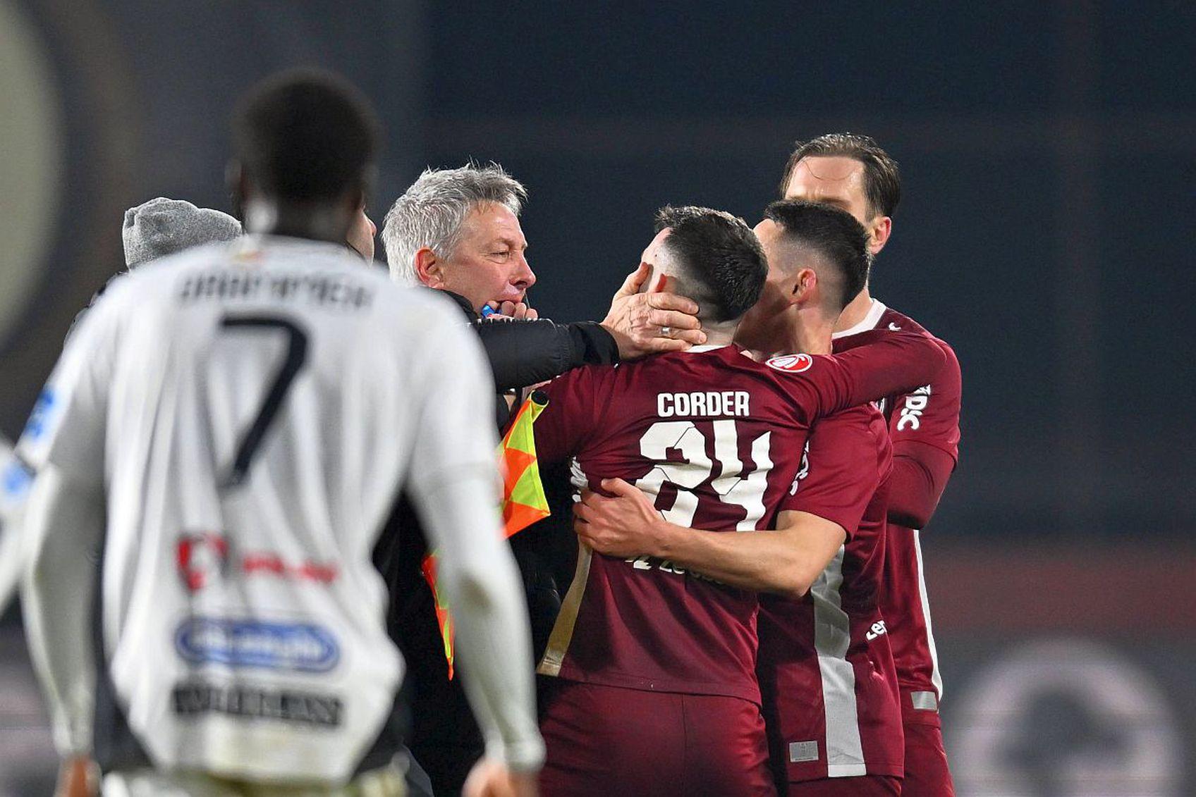 "CFR 1907 Cluj vs. FC Universitatea Cluj - Incidente, eliminări Bergodi Cristiano (antrenor Universitatea Cluj), Cordea Andrei Ioan (jucător CFR 1907 Cluj) - În temeiul art. 63.1.f, raportat la art. 63.2.2 din RD, se sancţionează jucătorul Cordea Andrei cu suspendare pentru trei meciuri şi penalitate sportivă de 5.000 lei. În temeiul art. 57.1 din RD, se sancţionează antrenorul Bergodi Cristiano cu suspendare pentru o lună şi penalitate sportivă de 10.000 lei", se arată în soluţia comisiei publicată, miercuri seara, pe site-ul oficial al Ligii Profesioniste de Fotbal.