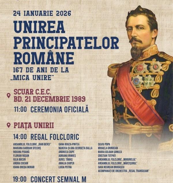 Primăria și Consiliul local Cluj-Napoca invită întreaga comunitate la Ziua Unirii Principatelor Române. Împreună sărbătorim 167 de ani de la „Mica Unire”, prin manifestări solemne și momente artistice.