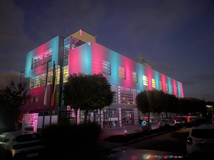 Primăria comunei Florești a fost iluminată în culorile roz și bleu, de Ziua Părinților de Îngeri