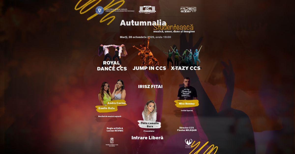 ”Autumnalia Studențească”, din cadrul Proiectului Transilvania Music Event reunește o serie de evenimente cu cei mai talentați tineri artiști din mediul universitar clujean, care vor avea loc în lunile octombrie și noiembrie la Casa de Cultură a Studenților ”Dumitru Fărcaș” din Cluj-Napoca.