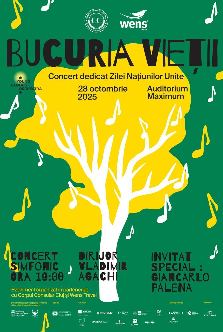 Cu ocazia Zilei Organizației Națiunilor Unite, Corpul Consular Cluj-Napoca organizează marți, 28 octombrie 2025, de la ora 19:00, la Auditorium Maximum, concertul extraordinar „Bucuria Vieții”.