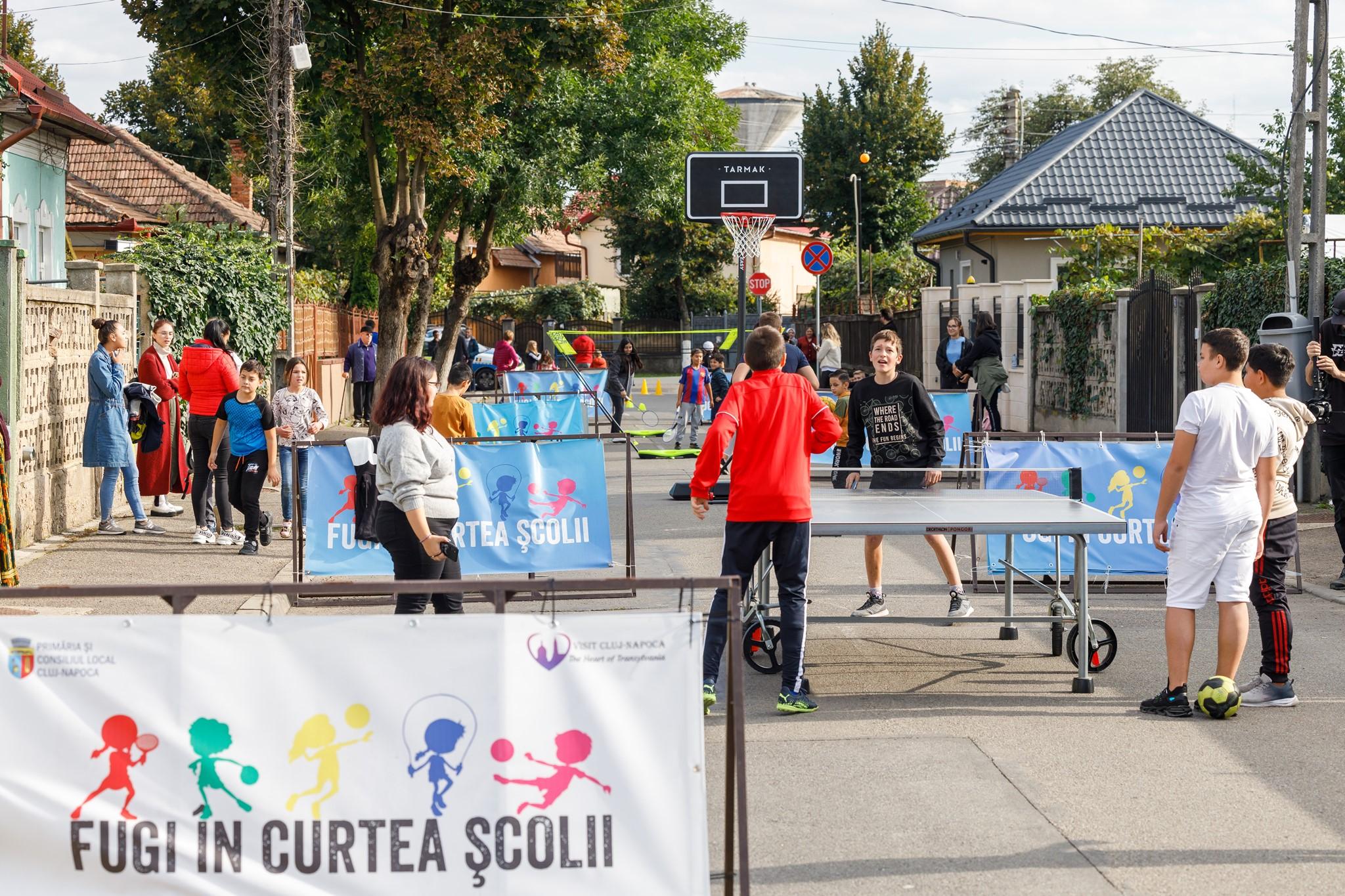 Pe stradă au fost create zone dedicate sportului, precum zonă pentru exerciții de motricitate, aruncare la poartă, baschet, badminton, tenis de masă și traseu de vitează.